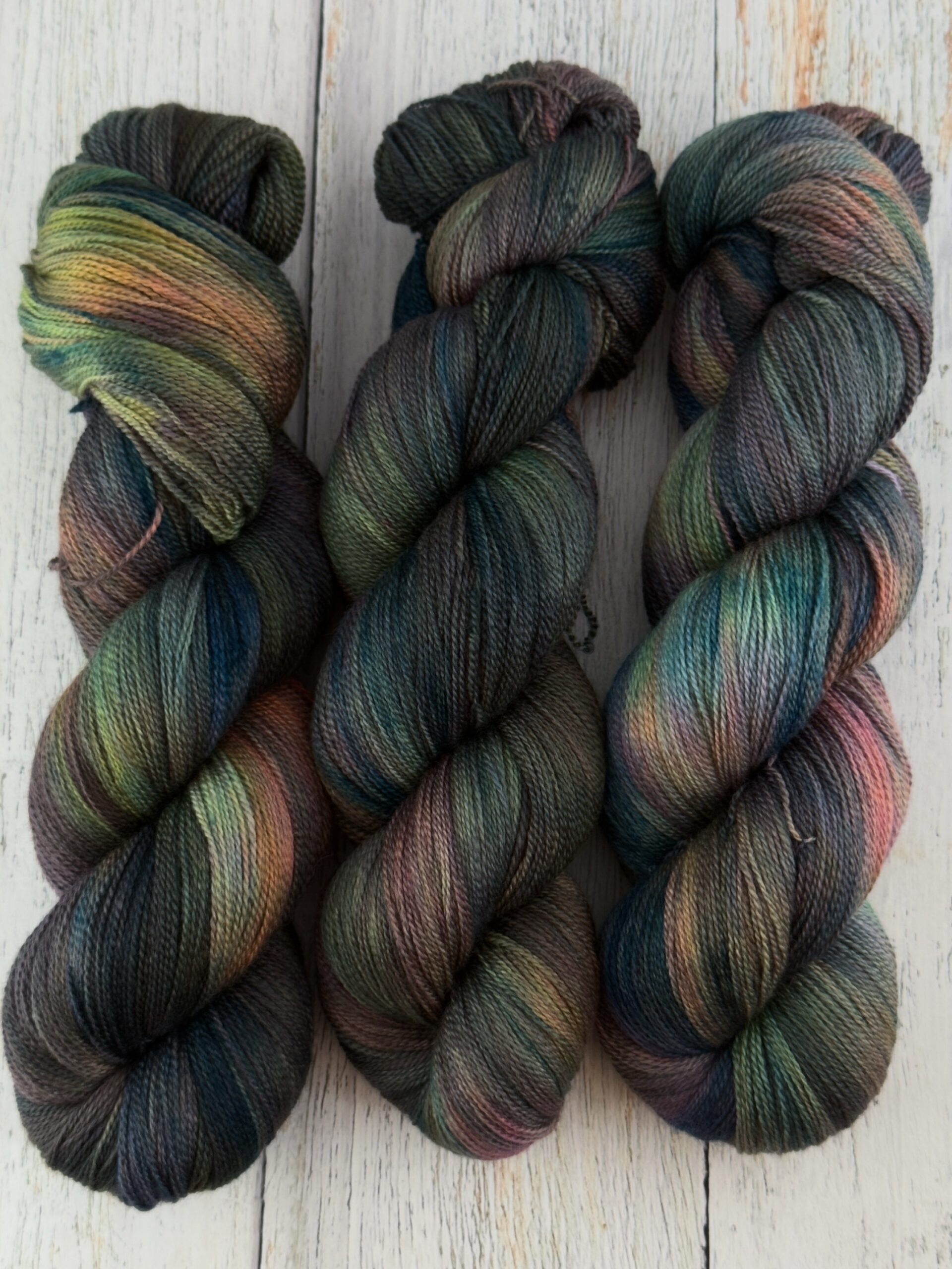 80% merino (19,5 micron, non-superwash) 20% mulberry selyem