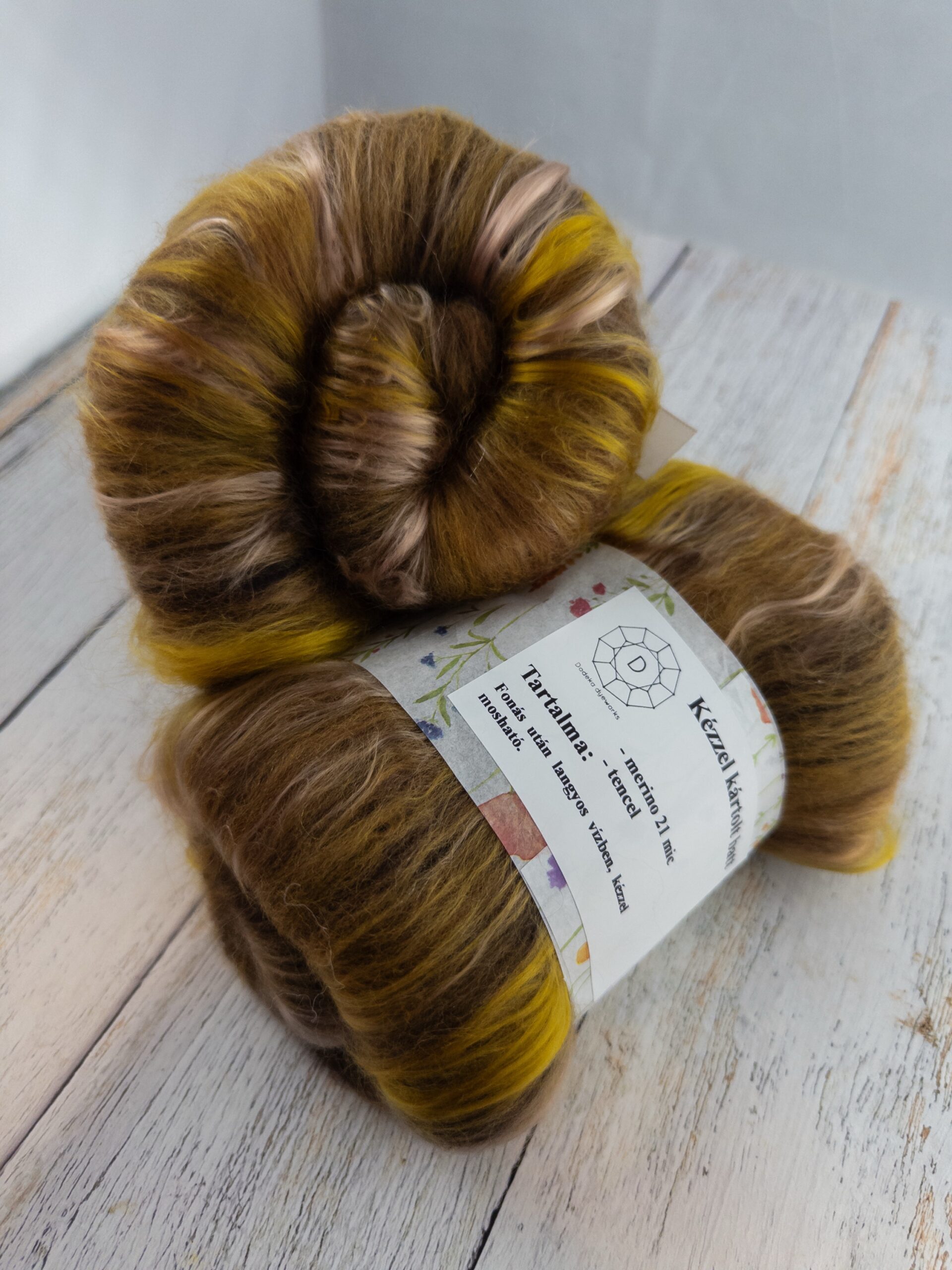 Ez a batt gyárilag festett merino gyapjúból és bambusz szálból van kártolva, kézi kártolón. Battjaimat bátran ajánlom azoknak is akik most ismerkednek a fonással. Nemezelésre is kíváló. A felhasznált merino 21 mic, mulesing mentes forrásból származik. 1 batt 60 g A zár egy battra érvényes! Bár nagyon igyekszünk termékeinket színhelyesen fotózni, mégis érdemes tudni, hogy monitoraink között lehetnek különbségek! Ezt kérlek vedd figyelembe rendeléskor!